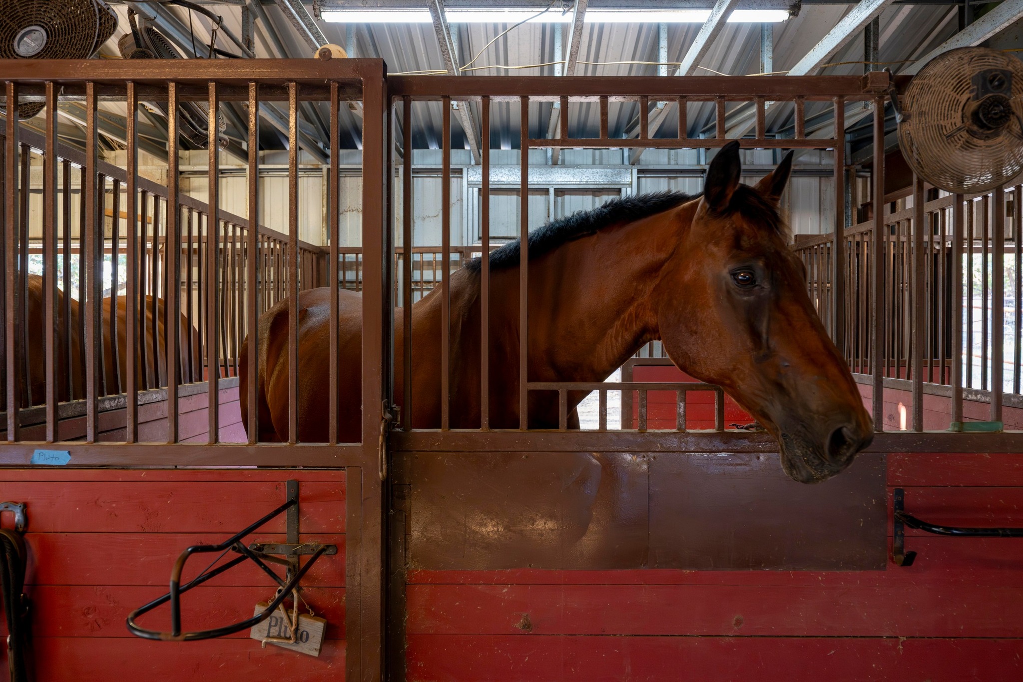 Additional features include a hay barn, feed barn, round pen, equipment sheds, and 11 paddocks with automated water.